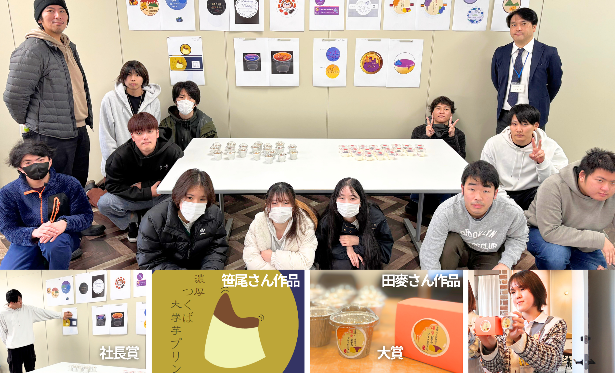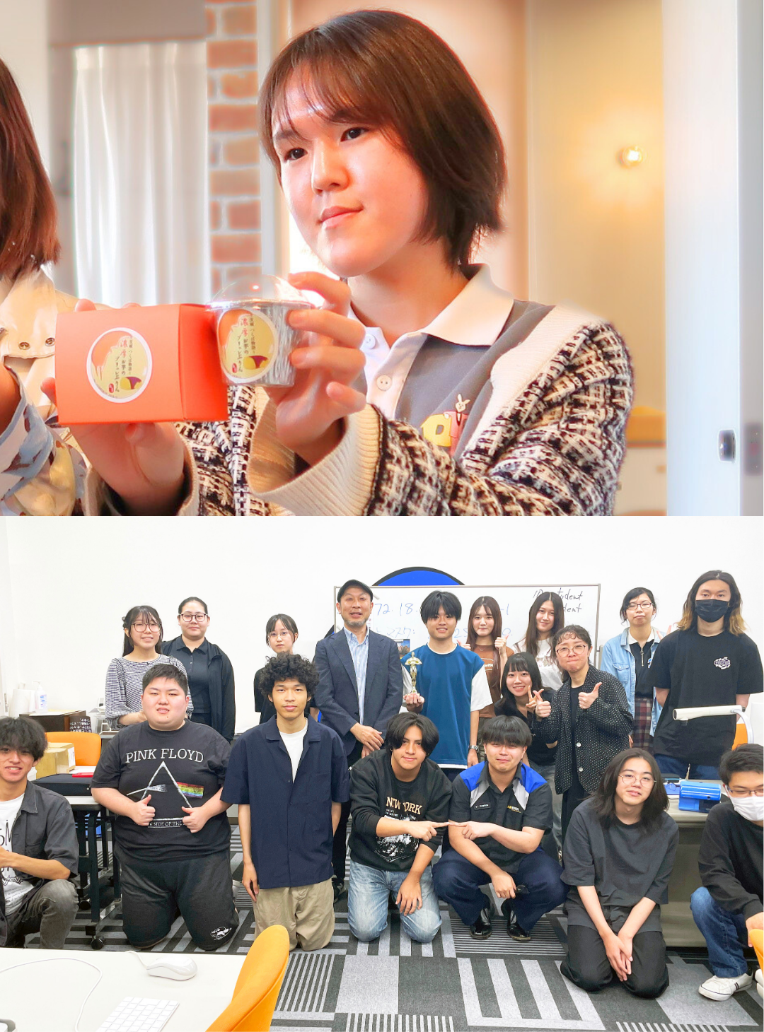 学生は、髙嶋啓教授(経営情報学部)の指導のもと制作し、1月に講評会で発表しました。結果、1作品が実際の商品デザインとして採用・商品化され、1作品が社長賞を受賞することとなりました。受賞作品の商品は、チーズケーキ専門店&g(アンジー)( https://andg.store/ )にて販売されました。
